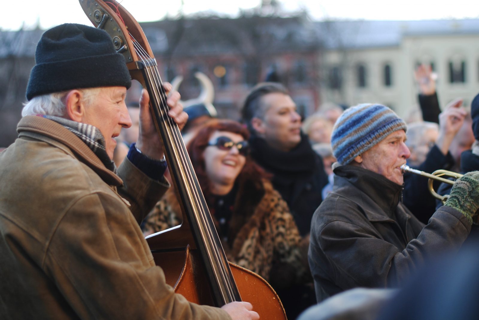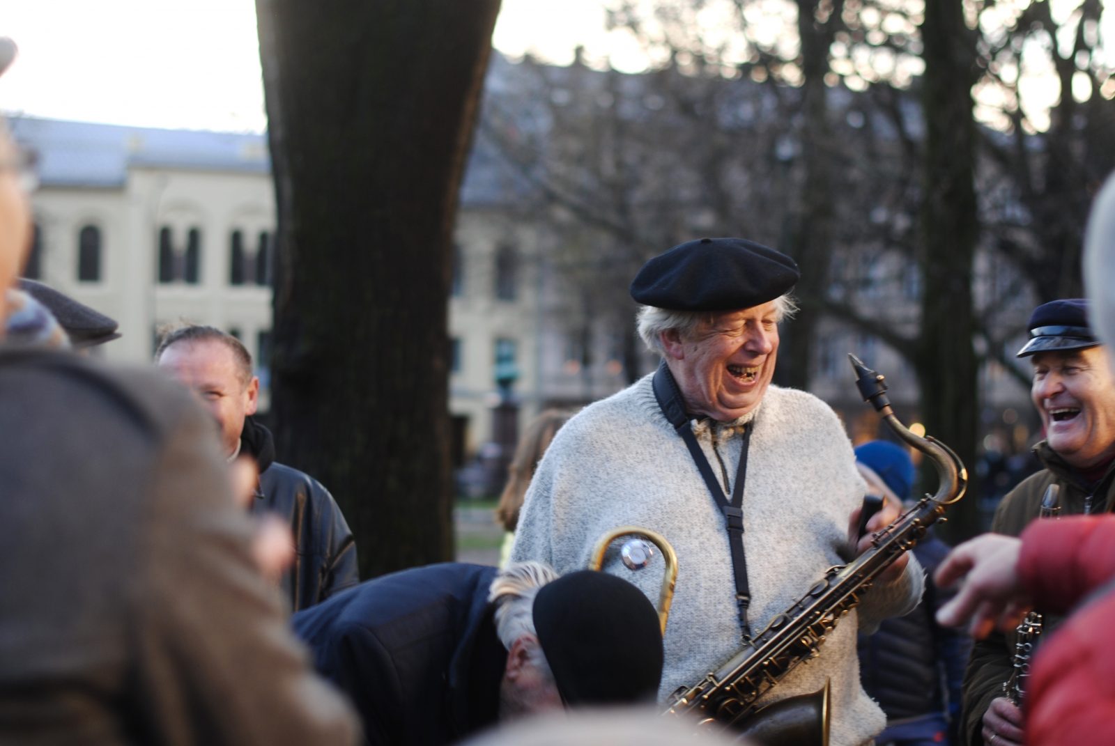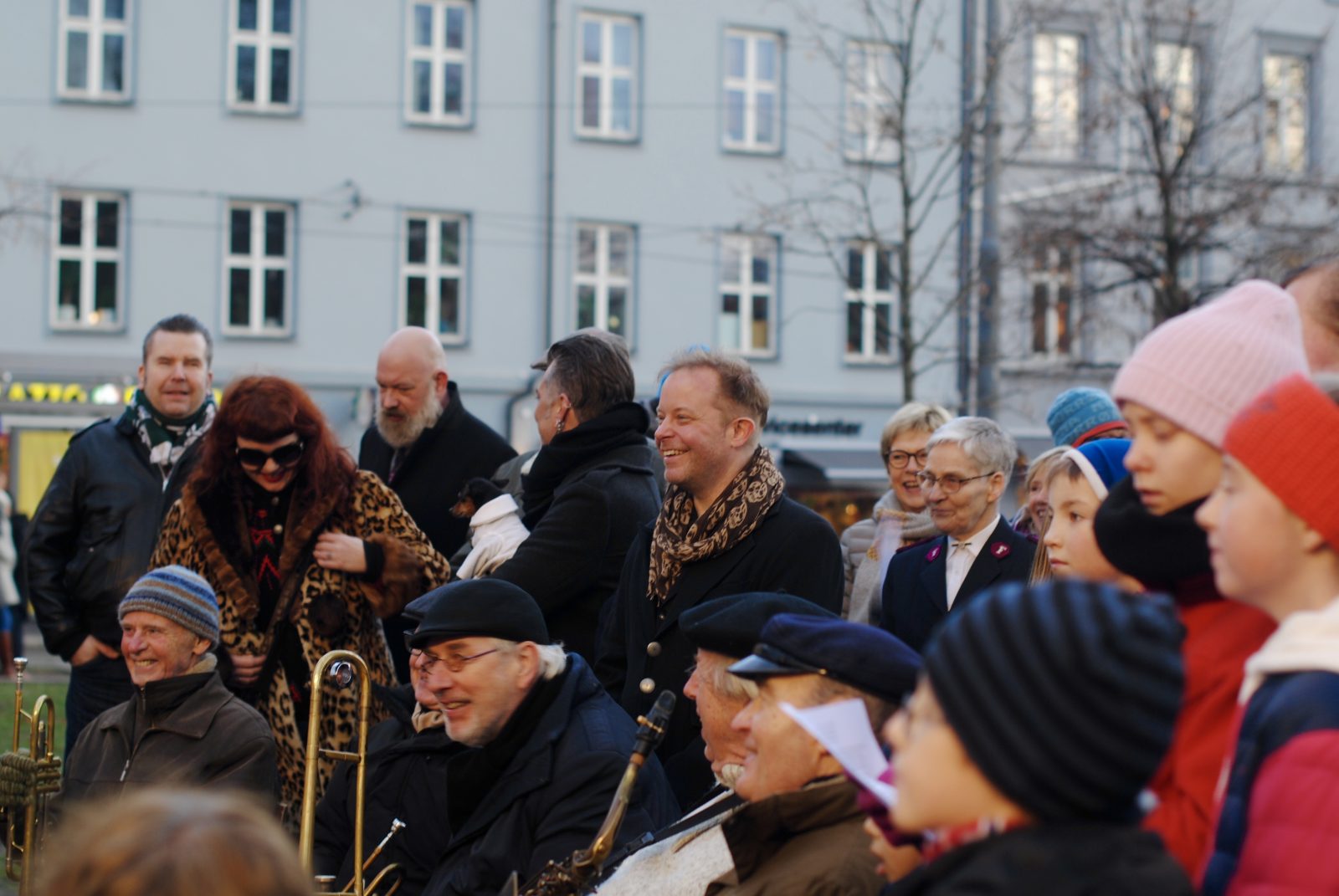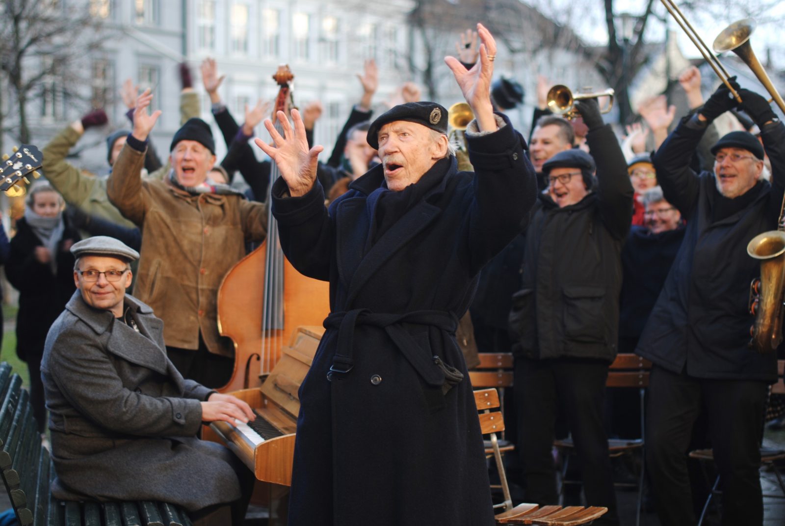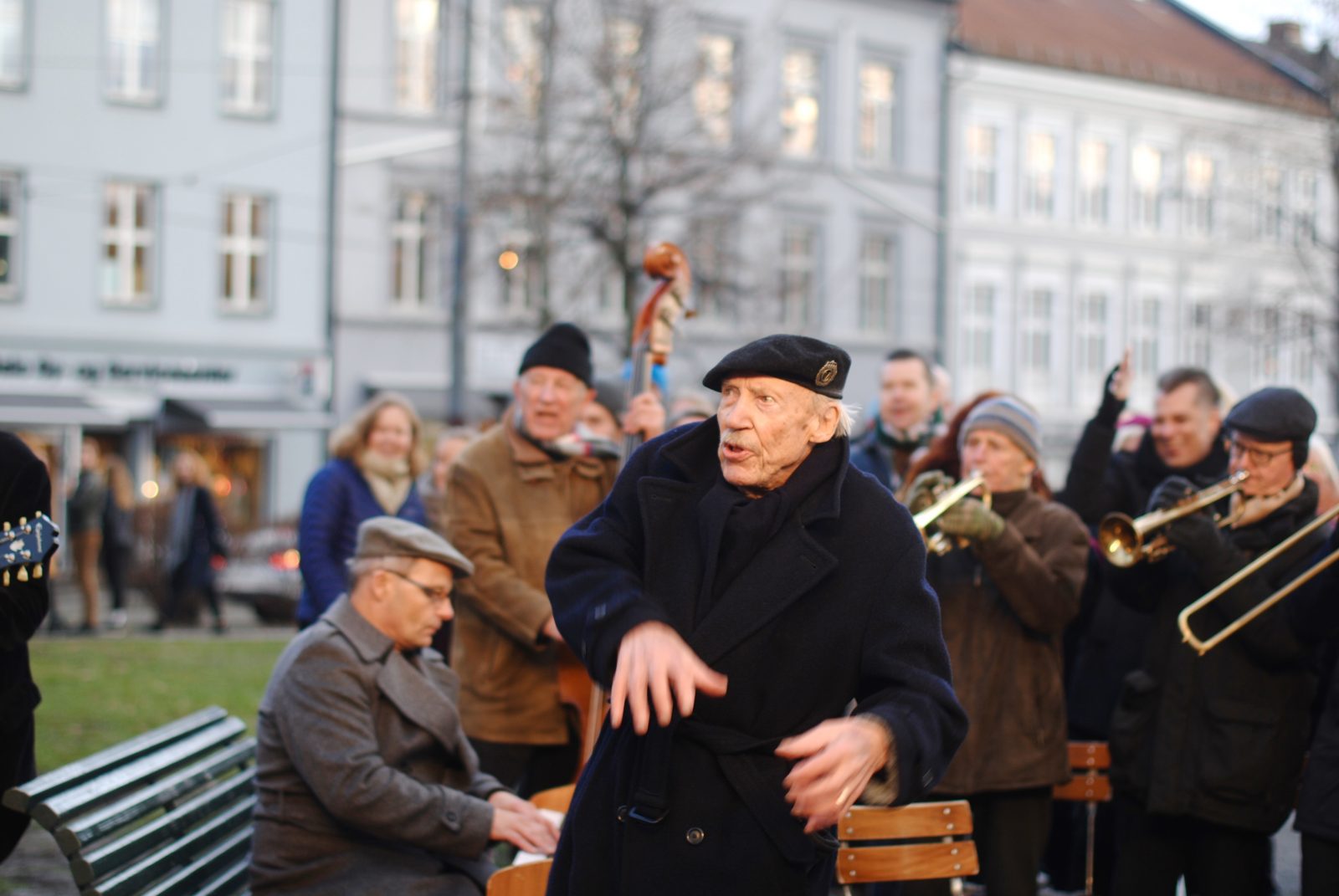 I anledning julegata møttes nabolaget til julegrantenning, gatelys-tenning og ikke minst: musikkvideoinnspilling for Alf Folmers «Jul på Løkka». 97-åringen dirigerte en fargerik gjeng på Olaf Ryes plass, bestående av både Løkka-veteraner, tilfeldige forbipasserende og oppglødde turister i vikinghjelmer.